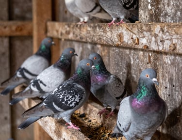 Pigeons can spread disease through their droppings, which can contaminate feed and water troughs for farm animals. Reduce pigeon numbers to mitigate the spread of disease.